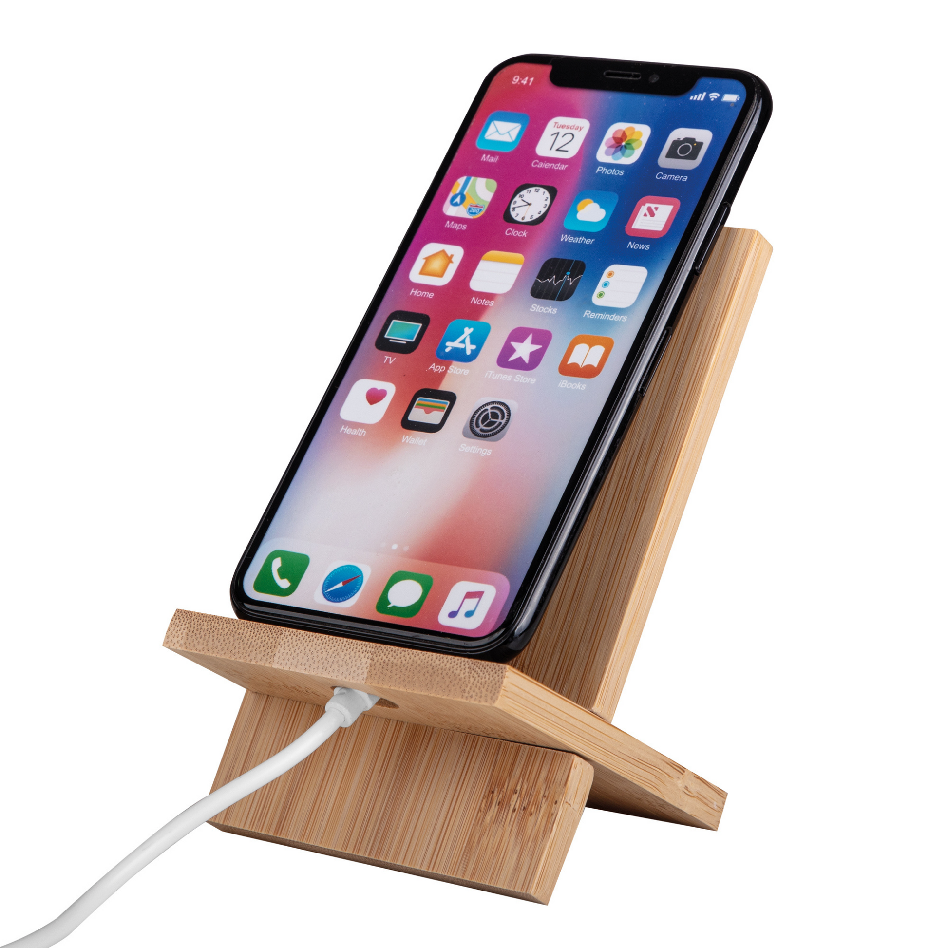 BRIX è una base portatelefono pratica e sostenibile, realizzata in bamboo naturale.