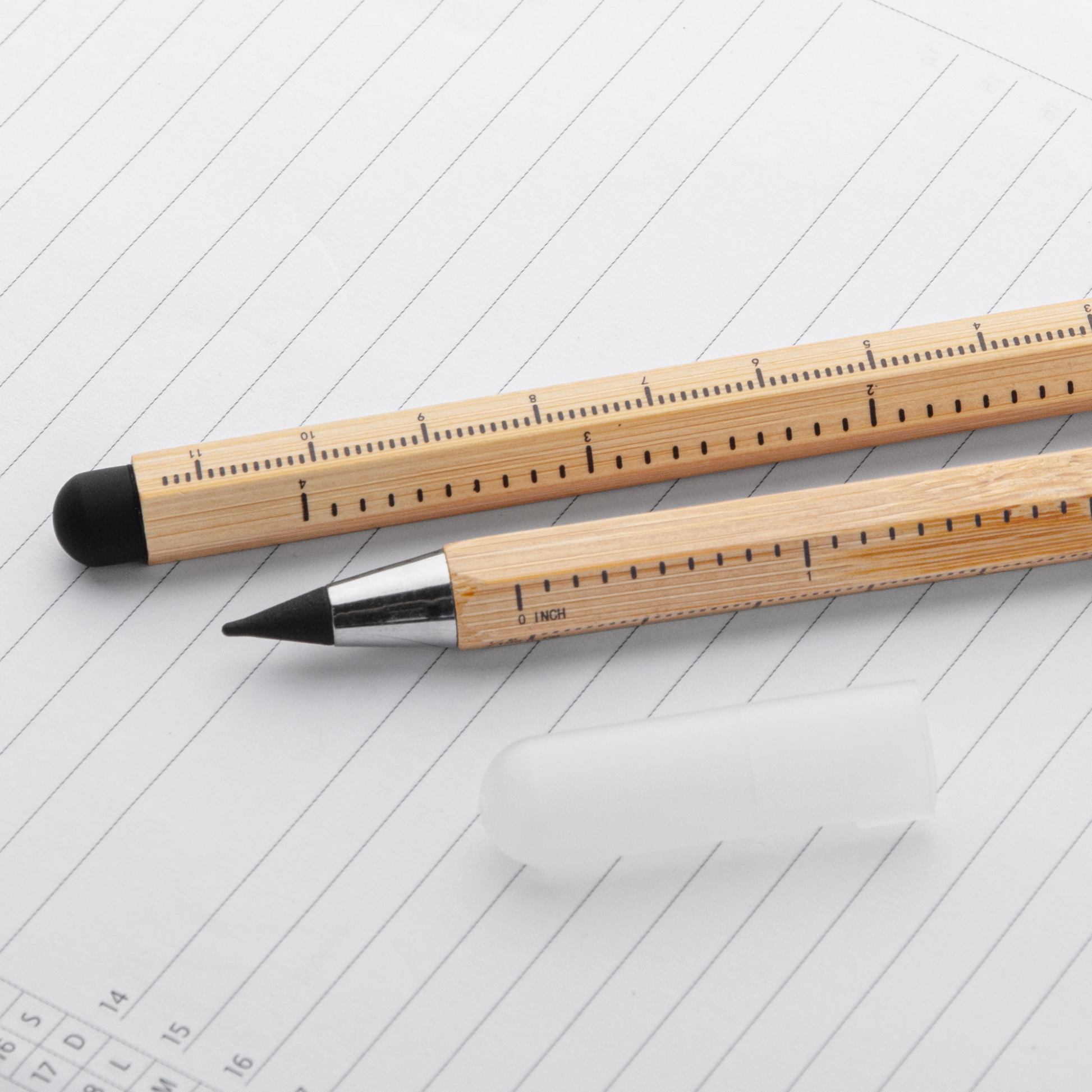 Una matita inesauribile che va oltre la scrittura: Punta e Misura combina tre strumenti in uno: matita eterna, gommino touchscreen e righello inciso in centimetri e pollici.