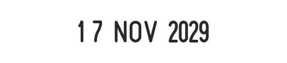 La data, con caratteri di 4 mm, viene timbrata nel formato giorno, mese (in lettere) e anno, permettendo una lettura chiara e precisa. Inoltre, grazie alla banda dell'anno, puoi impostare fino a 12 anni consecutivi, garantendo una lunga durata di utilizzo senza necessità di sostituzioni frequenti.