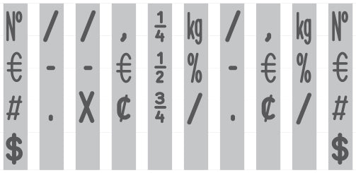 Con 10 bande da 5 mm, ogni banda contiene le cifre da 0 a 9 e caratteri aggiuntivi come €, ?, o $.