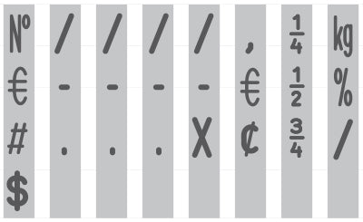 Ogni banda contiene cifre da 0 a 9 e simboli speciali come l'Euro.